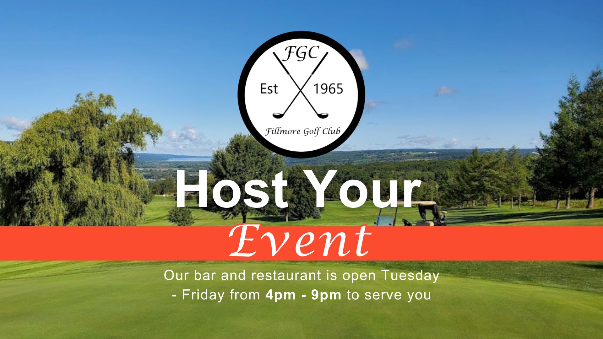 Looking for the perfect spot to host your next event? Take a look at Fillmore Golf Club for your next golf tournament or private party. Our bar and restaurant is open Tuesday – Friday from 4pm – 9pm to serve you. We also have incredible weekly specials you can’t say no to! From golf outings to weddings, we’ve got you covered.